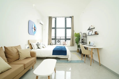 在王宇計劃租住的公寓內(nèi),不僅配備了智能門鎖、獨立衛(wèi)浴、床、衣柜、洗衣機、空調(diào)、冰箱,小到晾衣架也準(zhǔn)備了好幾個,“家電配套都是全新的,而且租金比市場價更低。”