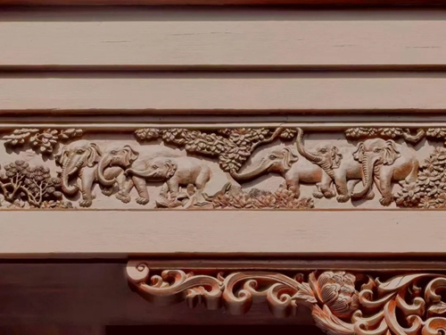 12號(hào)樓主題為獅子,主題來(lái)源于三門(mén)峽靈寶函谷關(guān),象征“事事如意”的獅子在柱子、平板枋、額枋、卡子花、假梁頭等構(gòu)件均有出現(xiàn)。