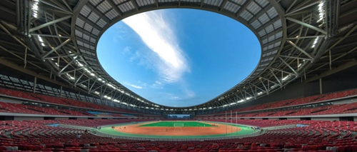 鄭州奧體中心體育場(chǎng)采用了“三角形巨型桁架+立面桁架+網(wǎng)架+大開口車輻式索承網(wǎng)格”的組合結(jié)構(gòu)體系設(shè)計(jì)。82米跨三角形巨型桁架,重量達(dá)1300噸,為同類之最;大開口車輻式索承網(wǎng)格結(jié)構(gòu)為全球最大懸挑,設(shè)計(jì)最大懸挑54.1米,其中,環(huán)向密封拉索直徑為130毫米、單個(gè)索夾重達(dá)6.5噸,均為國內(nèi)之最。項(xiàng)目整體形成的《鄭州奧體中心綜合建造技術(shù)》,成果總體達(dá)到國際先進(jìn)水平。