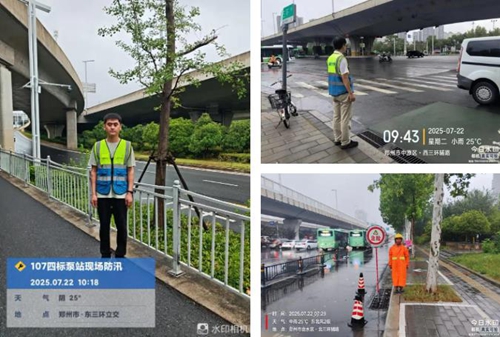 鄭州城建集團(tuán)子公司城投建工道路運(yùn)維項(xiàng)目及時部署防汛工作,投入大量人員、車輛及阻水板、反光錐等物資,明確防汛重點(diǎn),在積水點(diǎn),第一時間確保人員在崗值守。