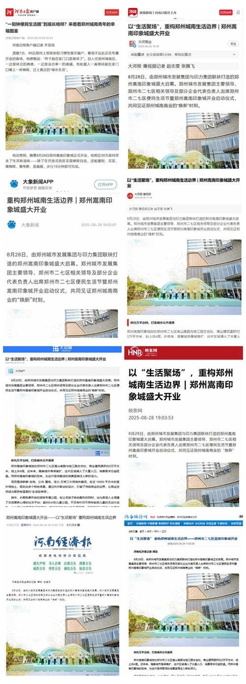 8月28日,鄭州城南商業(yè)格局迎來重大變革,由鄭州城市發(fā)展集團與印力集團攜手打造的鄭州嵩南印象城盛大啟幕,開業(yè)首日客流達(dá)12.6萬人次,迅速成為全城矚目的焦點。這一盛事引發(fā)了各大媒體的廣泛關(guān)注,河南日報客戶端、頂端新聞、大象新聞、大河報、大河網(wǎng)、映象網(wǎng)、河南經(jīng)濟報、鄭州日報、鄭州晚報、鄭州廣播電視臺等媒體紛紛聚焦,對其開業(yè)進行了全方位、多角度的報道。