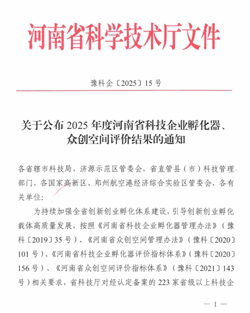 近日,河南省科學技術(shù)廳正式發(fā)布《關(guān)于公布2025年度河南省科技企業(yè)孵化器眾創(chuàng)空間評價結(jié)果的通知》(豫科企〔2025〕15號),鄭州城發(fā)集團金岱智慧產(chǎn)業(yè)園憑借扎實的孵化服務能力、突出的創(chuàng)新培育成效,在全省223家省級以上科技企業(yè)孵化器的嚴格考評中脫穎而出,榮獲最高考核等級——“優(yōu)秀(A類)”!