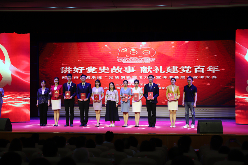 為慶祝中國共產(chǎn)黨成立100周年, 扎實開展黨史學習教育, 5月26日上午,鄭州市國資系統(tǒng)“講好黨史故事·獻禮建黨百年”——“黨的創(chuàng)新理論萬場宣講進基層”宣講大賽在市總工會一樓職工大禮堂圓滿落下帷幕。來自市國資系統(tǒng)14家單位選送的15個宣講節(jié)目進入大賽決賽,鄭州地產(chǎn)集團選送的西流湖公司黨支部宣講節(jié)目《百年交響》榮獲三等獎。
