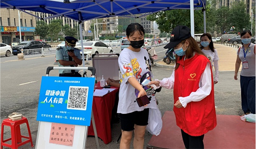 疫情防控刻不容緩。志愿者們首先仔細(xì)詢問了社區(qū)值守人員防疫工作流程及細(xì)節(jié),認(rèn)真記錄社區(qū)防疫的步驟和相關(guān)要求。志愿者們配合社區(qū)工作人員提醒大家正確佩戴口罩,對進(jìn)出社區(qū)人員進(jìn)行健康掃碼和體溫測量,一個(gè)個(gè)忙碌的身影為社區(qū)抗疫一線筑牢“防護(hù)墻”。